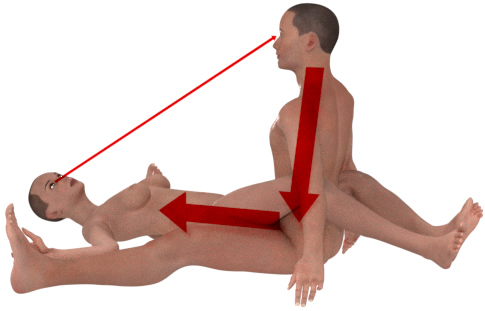 2. Vom Stirnchakra der Frau zum Stirnchakra des Mannes (Dabei muss wie auch bei den meisten folgenden Möglichkeiten, keine direkte Berührung dieser Chakren stattfinden.)